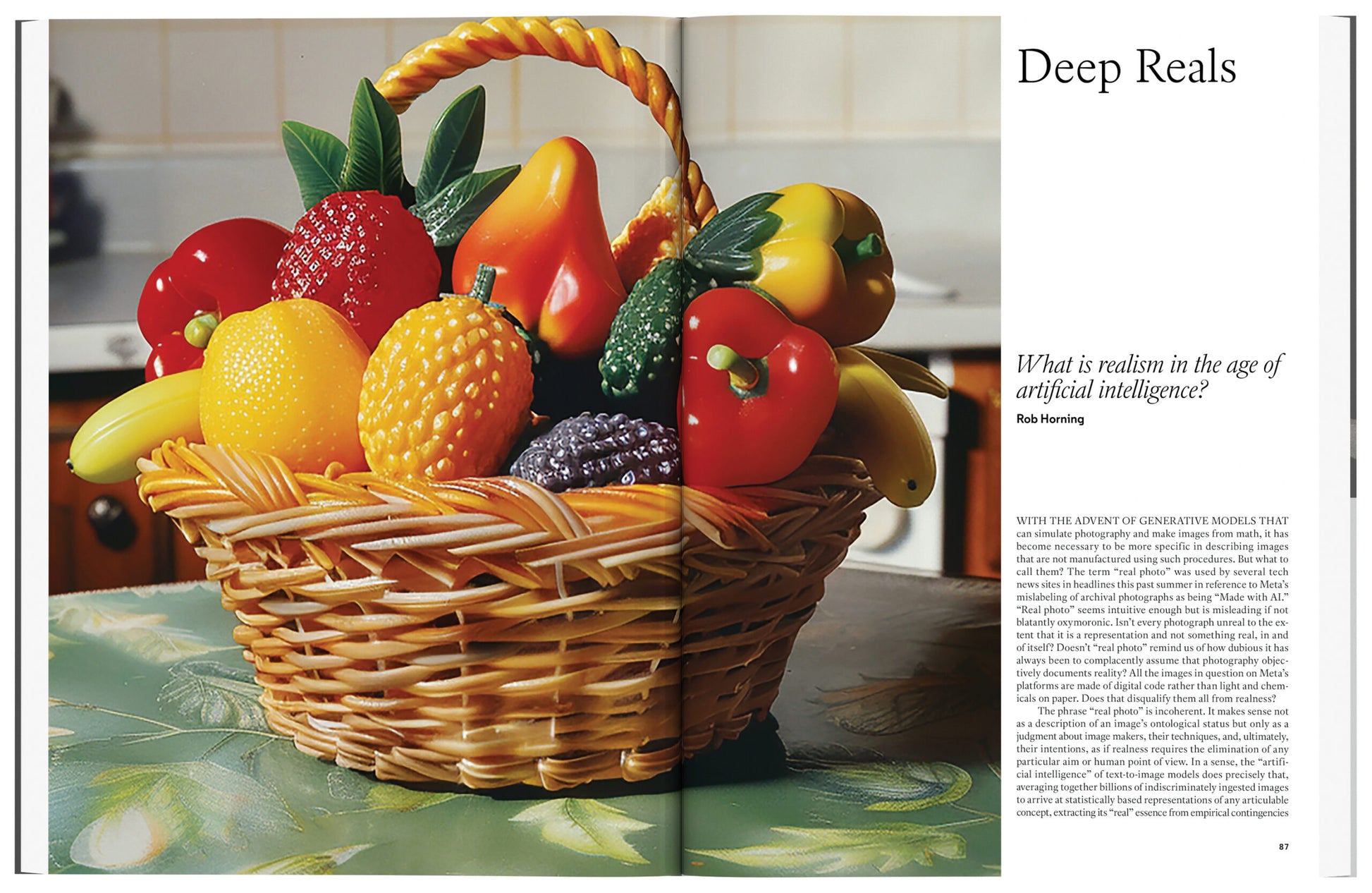 To weigh the risks and possibilities of this transformative change, Aperture has turned to some of the leading thinkers in the field. Artist Trevor Paglen and researcher Kate Crawford demystify the “intelligence” of AI and outline its threats to privacy, democracy, and the planet. Pioneering media theorist Fred Ritchin and journalist Brian Palmer unravel the implications of artificial intelligence on the photographer’s role as a credible witness. Cultural critic Nora N. Khan explains why we need new criteria to interpret generative images. Rob Horning argues for a more complex understanding of photography’s relationship to reality, exposing how the idea of a “real photo” has always been incoherent, while Peter J. Karol delves into the bizarre realm of AI copyright law, examining the unlikely precedents used to develop legal frameworks in the United States.