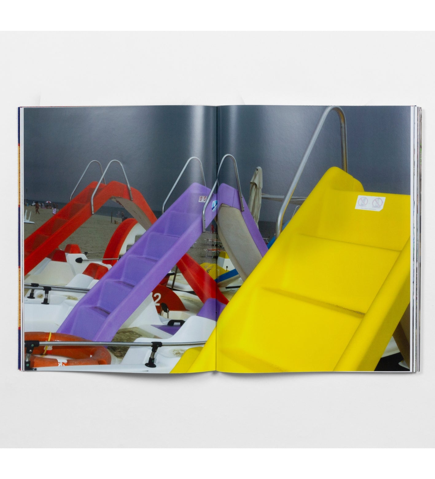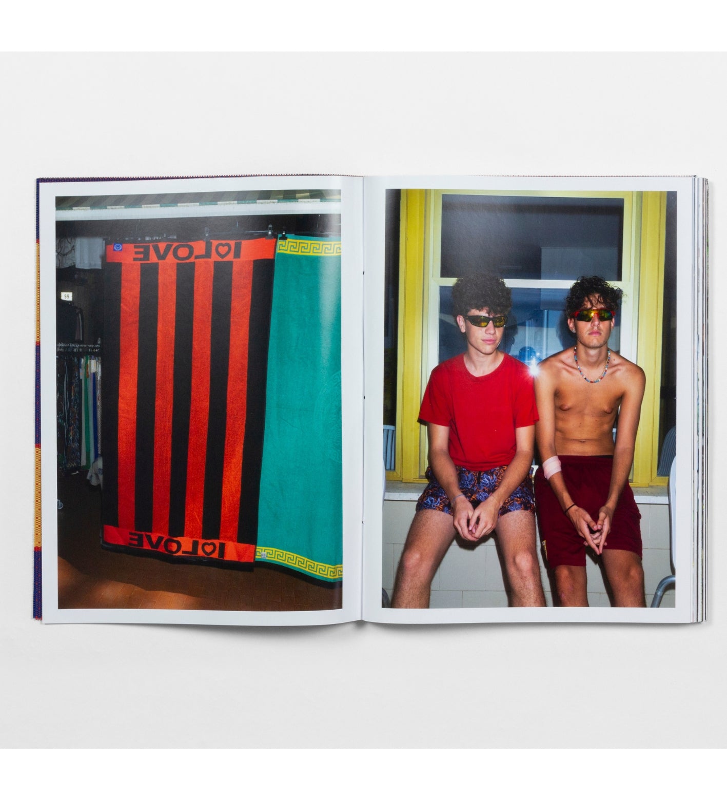 "We're giving sunbed fabric salvaged from the beach resorts of Lido Estensi a new lease of life as our cover, making each book totally unique. The book is of large format, bound in a single section, and comes in a hand screen printed transparent zipper bag"