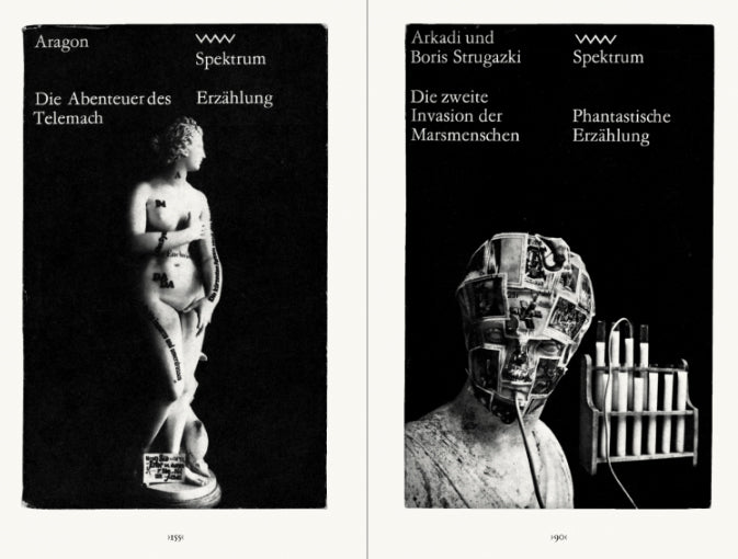 Spektrum, published in East Berlin by Volk und Welt from 1968 to 1993, embodied the ideals of accessibility and inclusiveness epitomised by the wave of mid-twentieth century paperbacks, in their inherent simplicity and usability. And yet, despite its mass readership, the series’ dense monochrome imagery has an uneasy air of mystery, with often oblique relationship to the books’ contents.