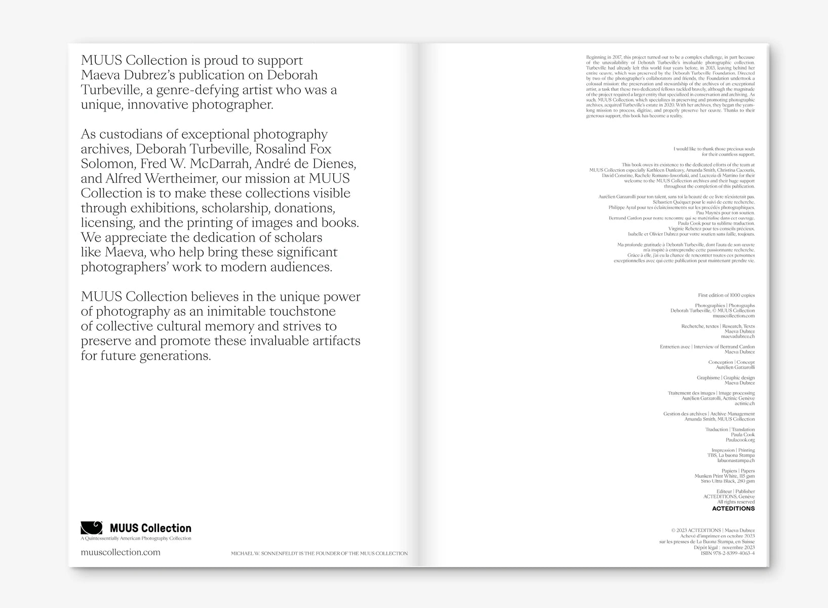 This book, the fruit of in-depth research by art historian Maeva Dubrez, was supported by the MUUS Collection, which holds Deborah Turbeville's entire archive.