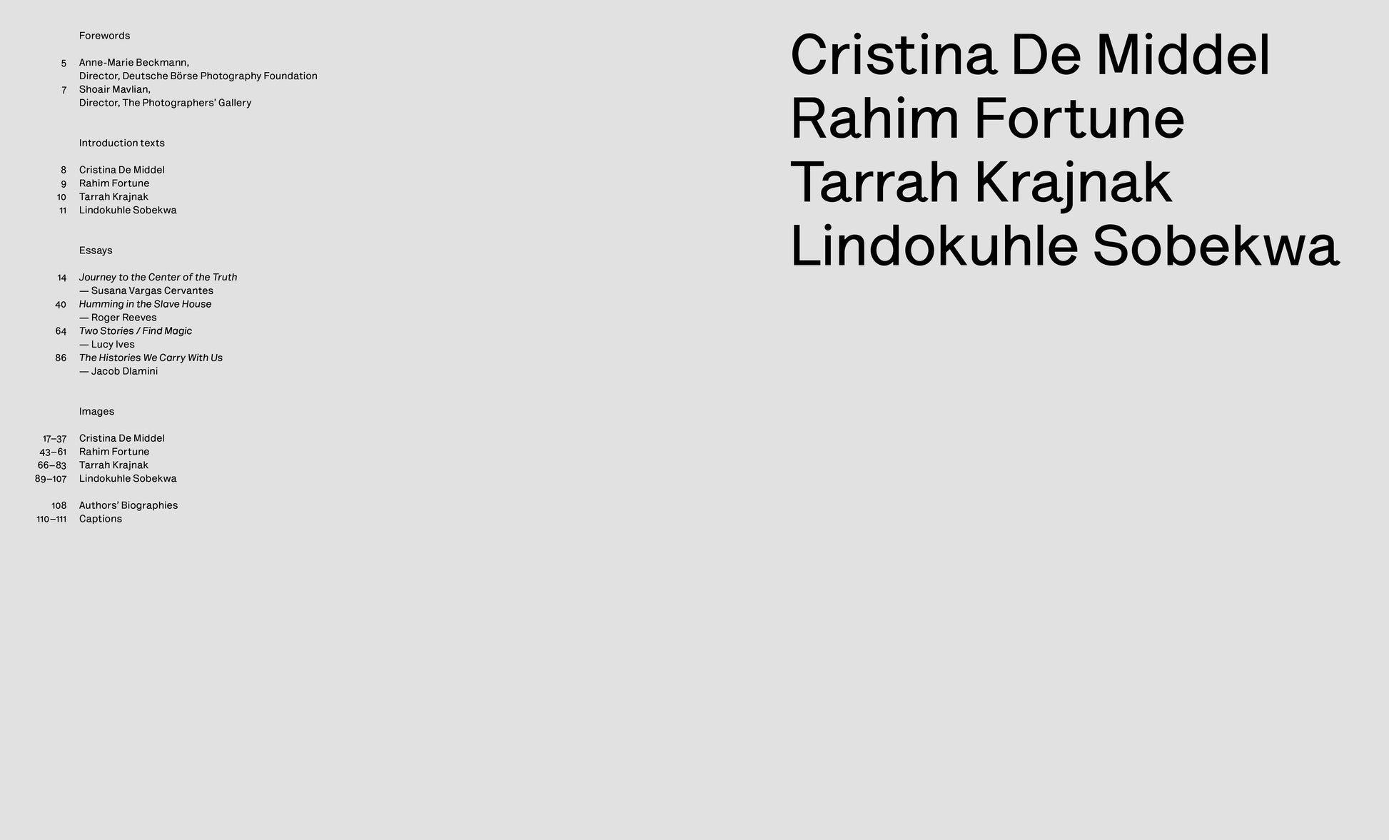 The exhibition catalogue for the Deutsche Börse Photography Foundation Prize 2025. The four shortlisted artists are;