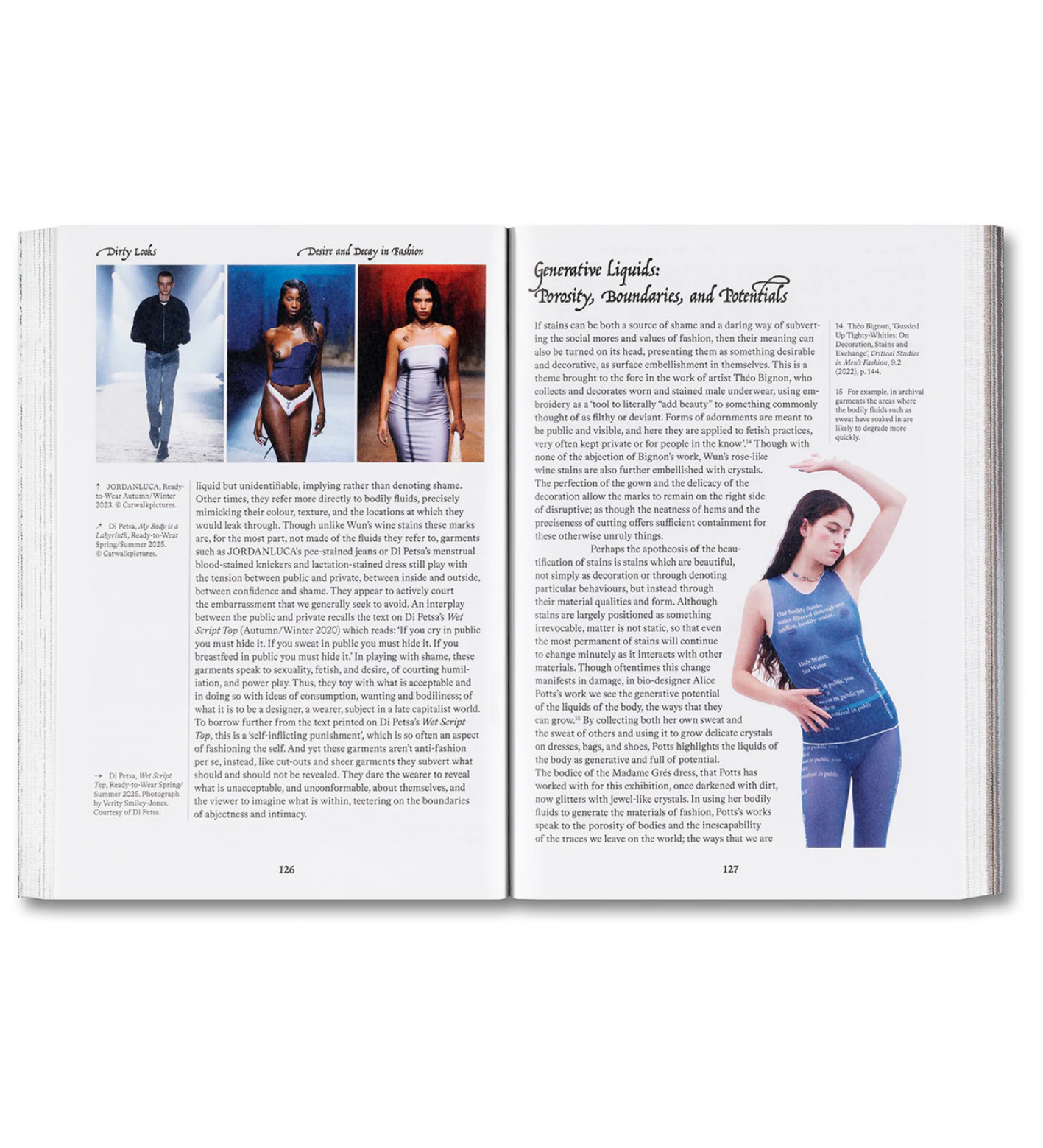 This richly illustrated anthology features new essays by influential voices in contemporary fashion, including Caroline Evans, Akiko Fukai, Lou Stoppard, and Sara Arnold. Their writing spans decolonial critique, feminist resistance, fashion’s environmental cost, and the tension between bodily intimacy and public display. Alongside these texts, an extensive photographic portfolio by Ellen Sampson captures iconic garments that embody the project’s themes in sharp, forensic detail. Featured designers include Vivienne Westwood, Hussein Chalayan, Comme des Garçons, Issey Miyake, Alexander McQueen, Maison Margiela, and many more.