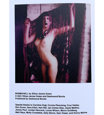 “This zine is the first rendition of a whirlwind collaborative project with a group of valued friends and colleagues that we embarked on over the summer of 2021 while emerging (slowly) from the frustrations of the past 18 months. Once we began shooting, the title, Bombshell, soon became the unconscious driving force behind our days of dress-up and performance. The seven models featured here are just a sample and represent the beginning of a much broader ongoing project” Artist’s statement Ethan James Green