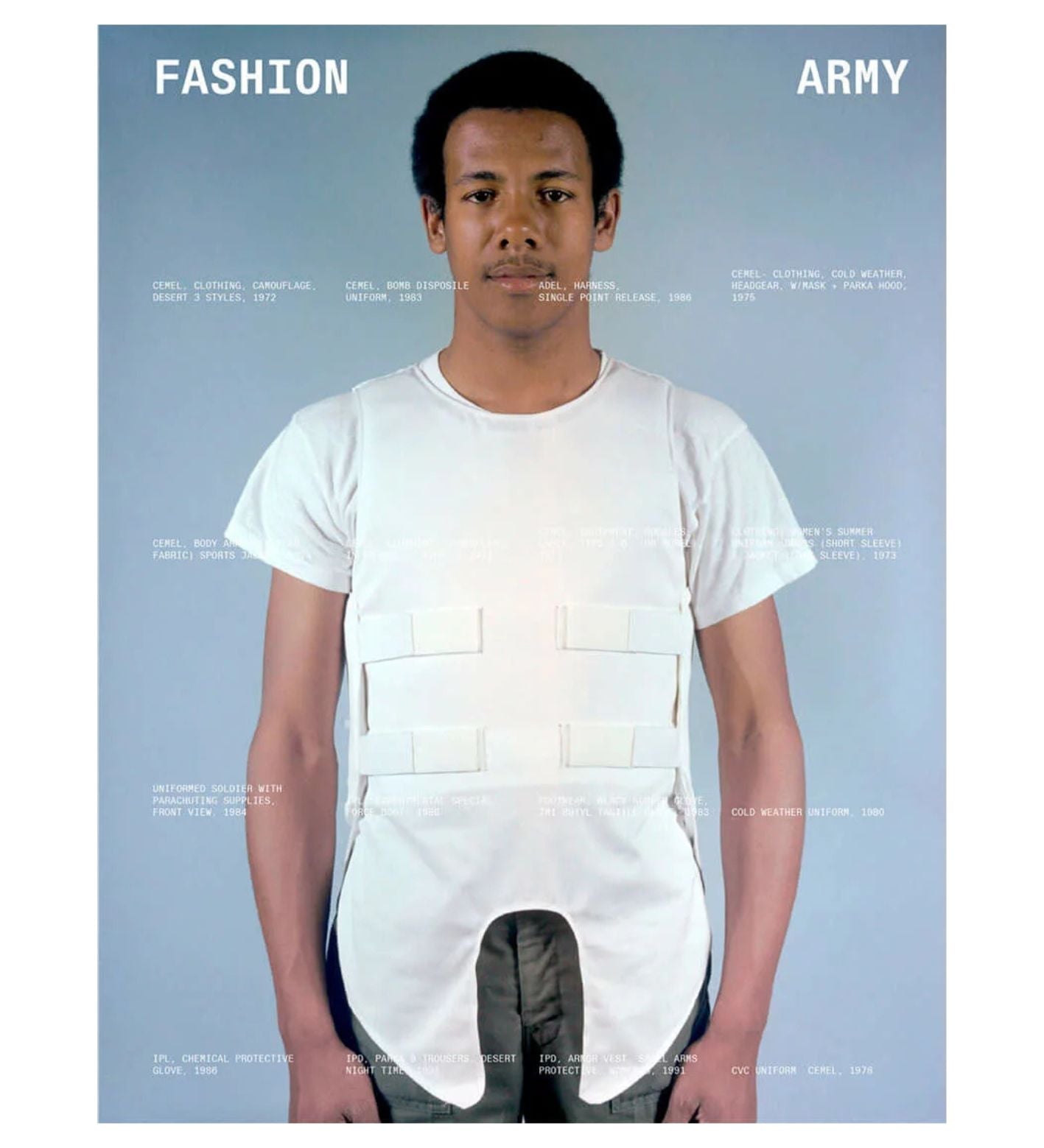 Fashion Army investigates the evolution of military attire into iconic fashion. French visual researcher Matthieu Nicol presents a catalogue of three hundred and fifty documentary images from the declassified US Army Natick Labs archive, tracing military style from the late 1960s to the early 1990s. These images showcase the meticulous development of clothing and gear designed for both the battlefield and everyday military life, highlighting the profound connection between fashion, power, and aesthetics. Through this ambiguous and compelling sequence, Fashion Army offers a nuanced account of style, innovation, and the far-reaching influence of military apparel on fashion and identity, ultimately interrogating the signifiers of violence embedded in such attire.