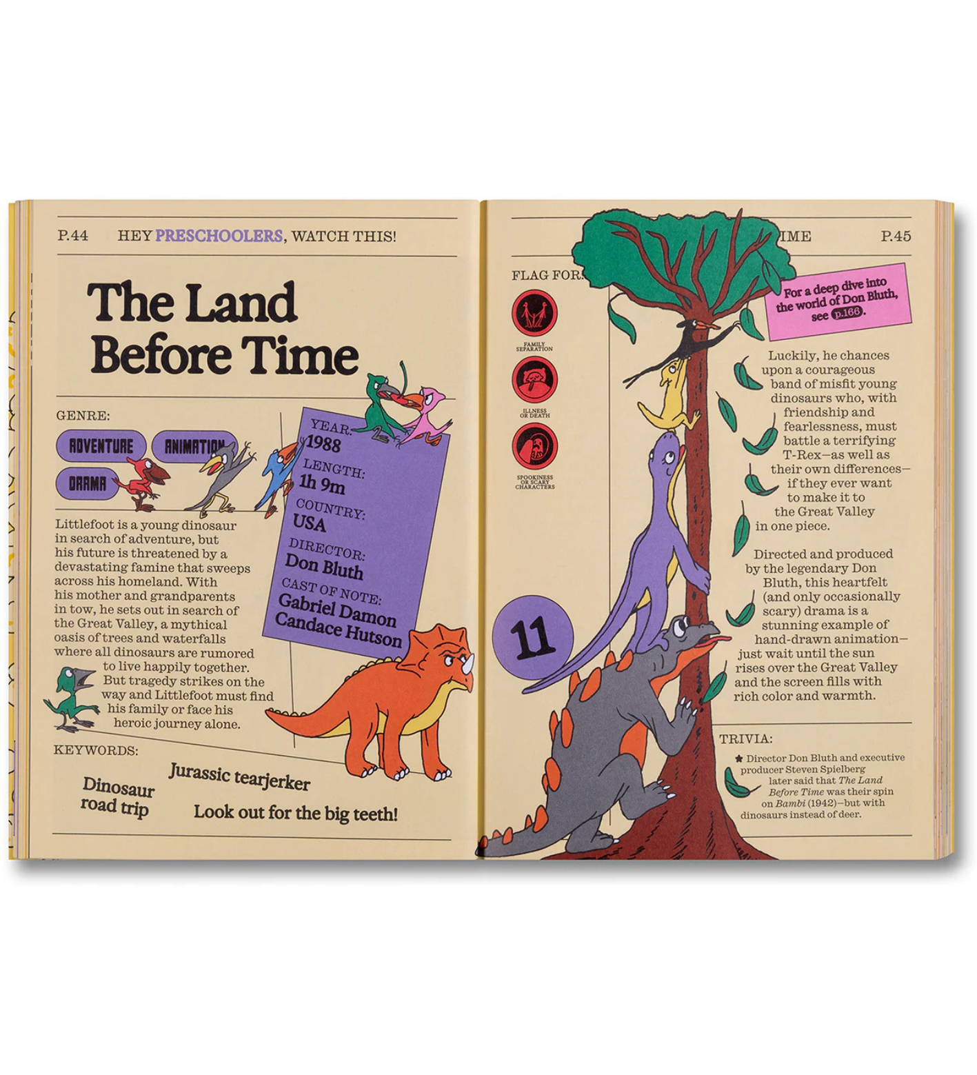 This book is jam-packed with over 100 kid - and adult - approved movie night recommendations that span decades, countries, and genres, with chapters for Preschoolers, Little Kids, Big Kids, and Tweens, featuring an introduction by Julian Shapiro-Barnum, host of Recess Therapy; an illustrated symbol system that flags age-inappropriate elements like scary characters or bad language; special sections dedicated to beloved genres and directors; fun activities and how-tos, including “How to Watch and Talk About Movies”; and a family film tracker to log your loves, likes, and mehs.