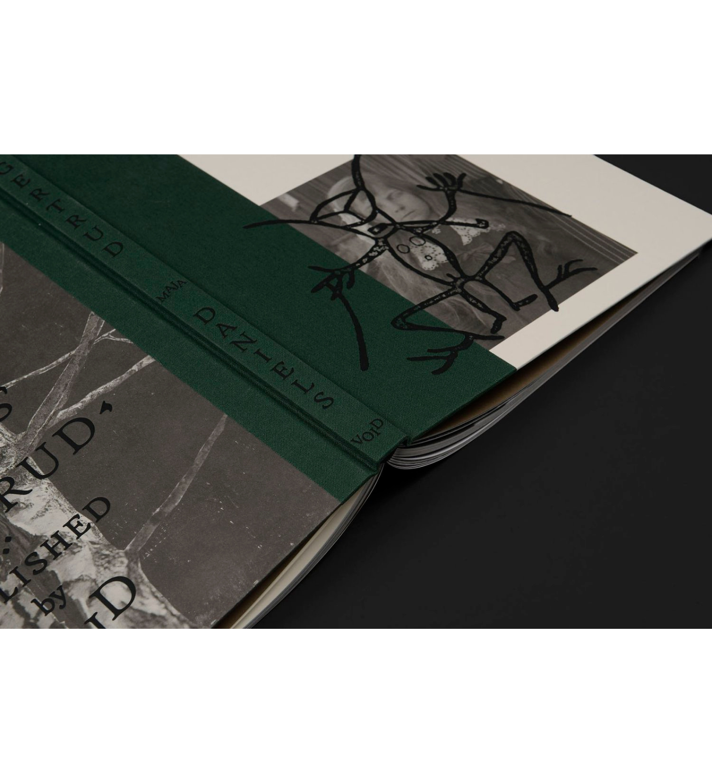 Most of the photographs in ‘Gertrud’ were created by Daniels through interventions in the forest. Utilising the landscape, a cast of characters and seemingly talismanic objects, she has drawn upon a surrealist desire to ‘re-enchant the world’. In reaction to the present-day view diminishing the value of forests to mere ‘resources’, her work re-envisions them as once more places of stories, myth and magic. Interspersed with Daniel’s photographs are those from the archive of Tenn Lars Persson (1878-1938) whose work she engaged with in her previous book ‘Elf Dalia’ (MACK). As the book ‘Gertrud’ unfolds the intertwined sets of photographs disorientate the viewer, unsettling ideas around place and linear time.