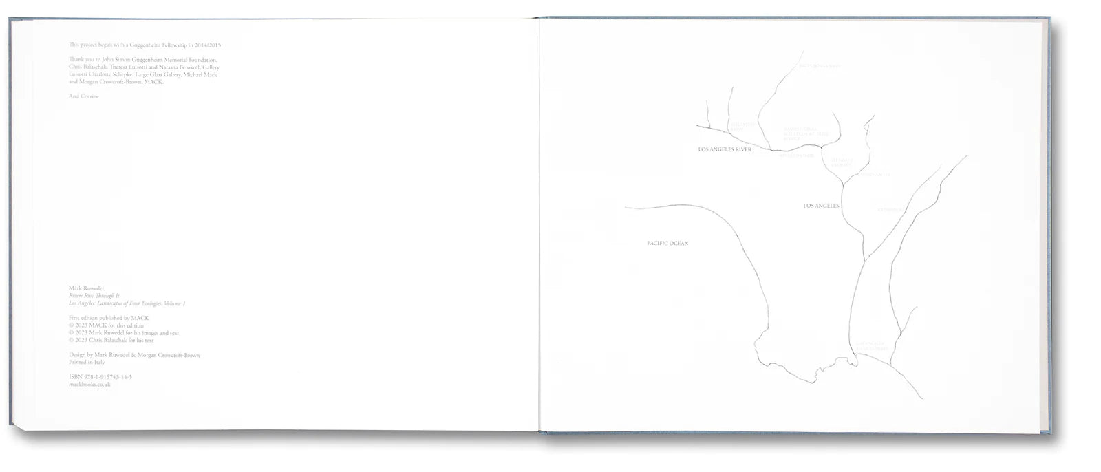 For the past decade, photographer Mark Ruwedel has been compiling an epic photographic account of the natural environment of his home city of Los Angeles. From the stark Californian coast to the vast expanses of the interior – many of which have been further lain bare by wildfires – Ruwedel tracks a unique ecology in constant, if subtle, dialogue with the human life that surrounds it: one where wildness is designed, contested, permitted, or resisted to varying degrees of success. In this first of four volumes, Ruwedel follows the Los Angeles River from Big Tujunga Wash to the Pacific Ocean. Using patient, forensic large- and medium-format photography in black and white, Ruwedel recalls the legacy of nineteenth-century photographer-cartographers such as Carleton Watkins and Timothy O’Sullivan, as well as land artists and New Topographics photographers of the 1970s, while forging his own elucidating relationship with the landscape. The series title Landscapes of Four Ecologies recalls architectural critic Reyner Baynam classic study Los Angeles: The Architecture of Four Ecologies, which describes the city as ‘one of the ecological wonders of the modern world’. The scale of this four-part project, Ruwedel’s most ambitious to date, is an artistic statement in itself: ‘When I say epic,’ he explains, ‘I am thinking of a project that is too large, which has porous boundaries, which is almost out of control.’