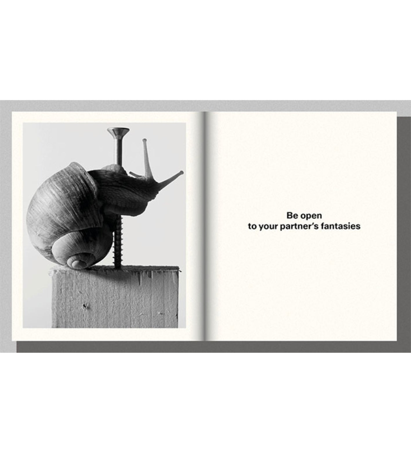 The photographs are interwoven with short annotations and reflections on life as a couple, which contribute to the narrative with a touch of irony.