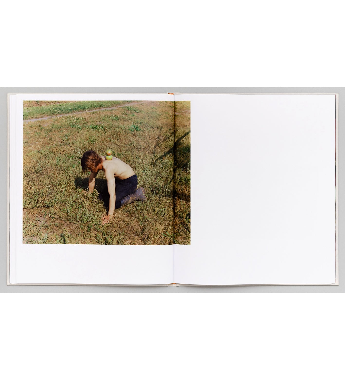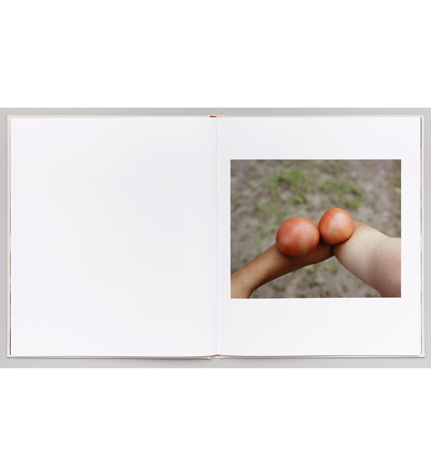 Staged on a farm in rural Japan, externaling Higashikawa in Hokkaido, Osamu Yokonami’s (b. 1967, Japanese) images demonstrate his particular use of photography as an artistic medium. Working with straightforward camera angles, Yokonami transforms ordinary bodies, farming tools and the local produce into haunting images—unexpectedly absurd and familiar. Headless figures, an aubergine-masked face, an abandoned baby on a paper bag, a topless character submissively kneeling in the grass while balancing two large tomatoes on their back. The series suggests a performative and complicit moment between the photographer and the people portrayed. As one feels the vulnerability of the subject facing the lens, one wonders: who is playing who in this image?