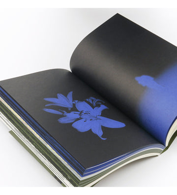 This book was printed on artisan Biotope Cotton paper, which was shipped by boat from Japan to Amsterdam. The boutique printers Robstolk are famous for their "skeleton" black, and a frequency modulated raster grid, which makes offset printing look like analogue photographic printing. 4 a.m. was "perfect" Japanese bound with cold glue by Agia Bookbinders, including a belly band with a screen print in matt gold bronze.