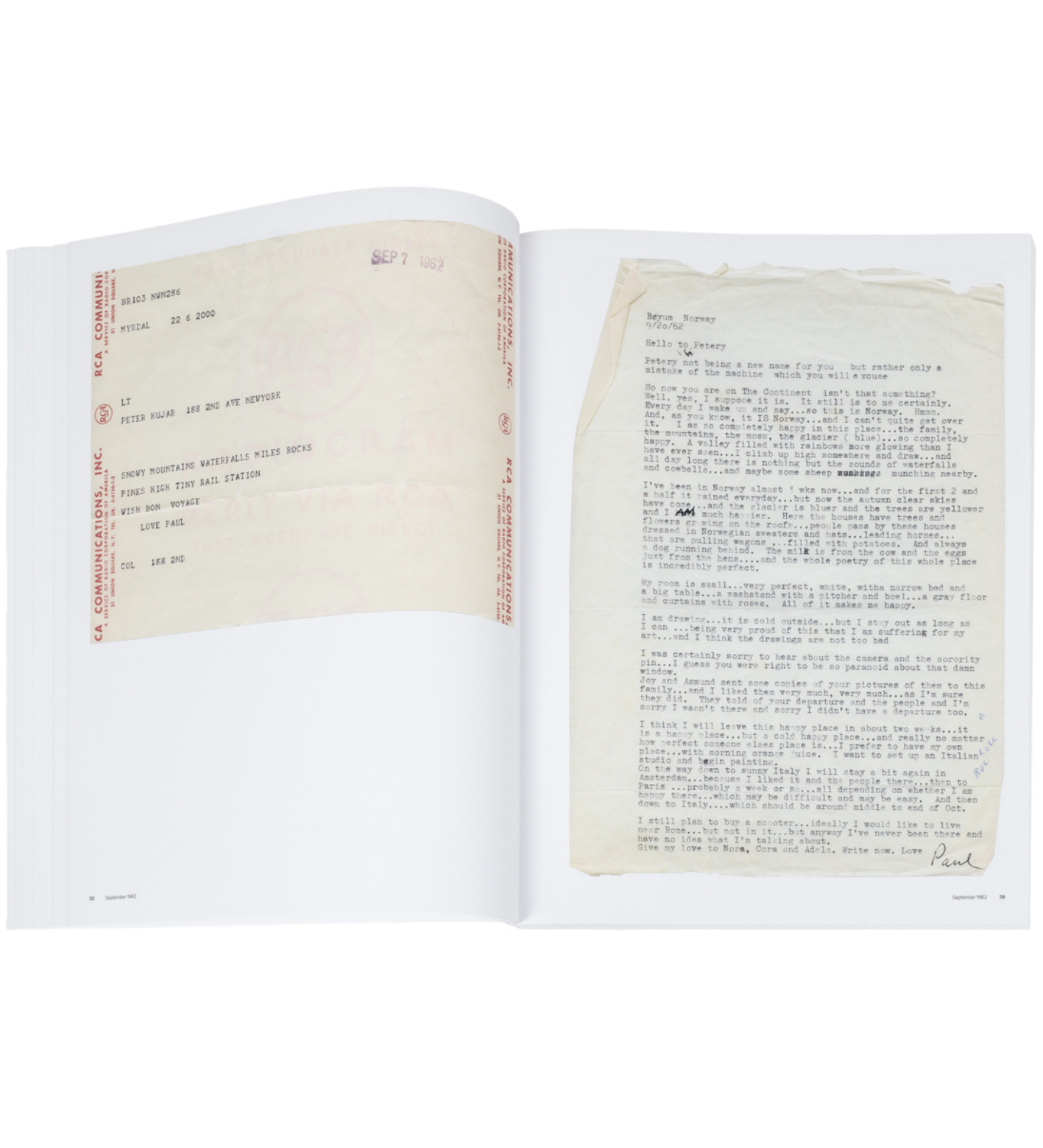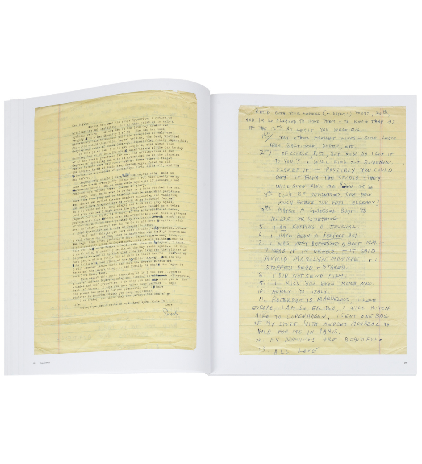 These early portraits of their budding relationship are followed by several playful postcards from Thek in 1960 and his first letter to Hujar in 1962, written while the artist is in the Philadelphia harbor aboard a containership bound for Europe. In the letter, Thek is brimming with joy and new discoveries and exclaims that the world “seems bigger and more gloriously strange than ever before in my entire life.” The two eventually meet in Rome, where they both begin to evolve into the icons we know them as today, and the remaining letters trace Thek’s travels and adventures, romantic dalliances, work, and financial ups and downs through 1975. More than fifty letters and postcards, along with drawings and other ephemera, are reproduced in Stay away from nothing and their poetic, quotidian, and melancholic tone provide a rare glimpse into Thek and Hujar’s relationship as it wavers with seduction, glamor, tumult, and mischievousness.