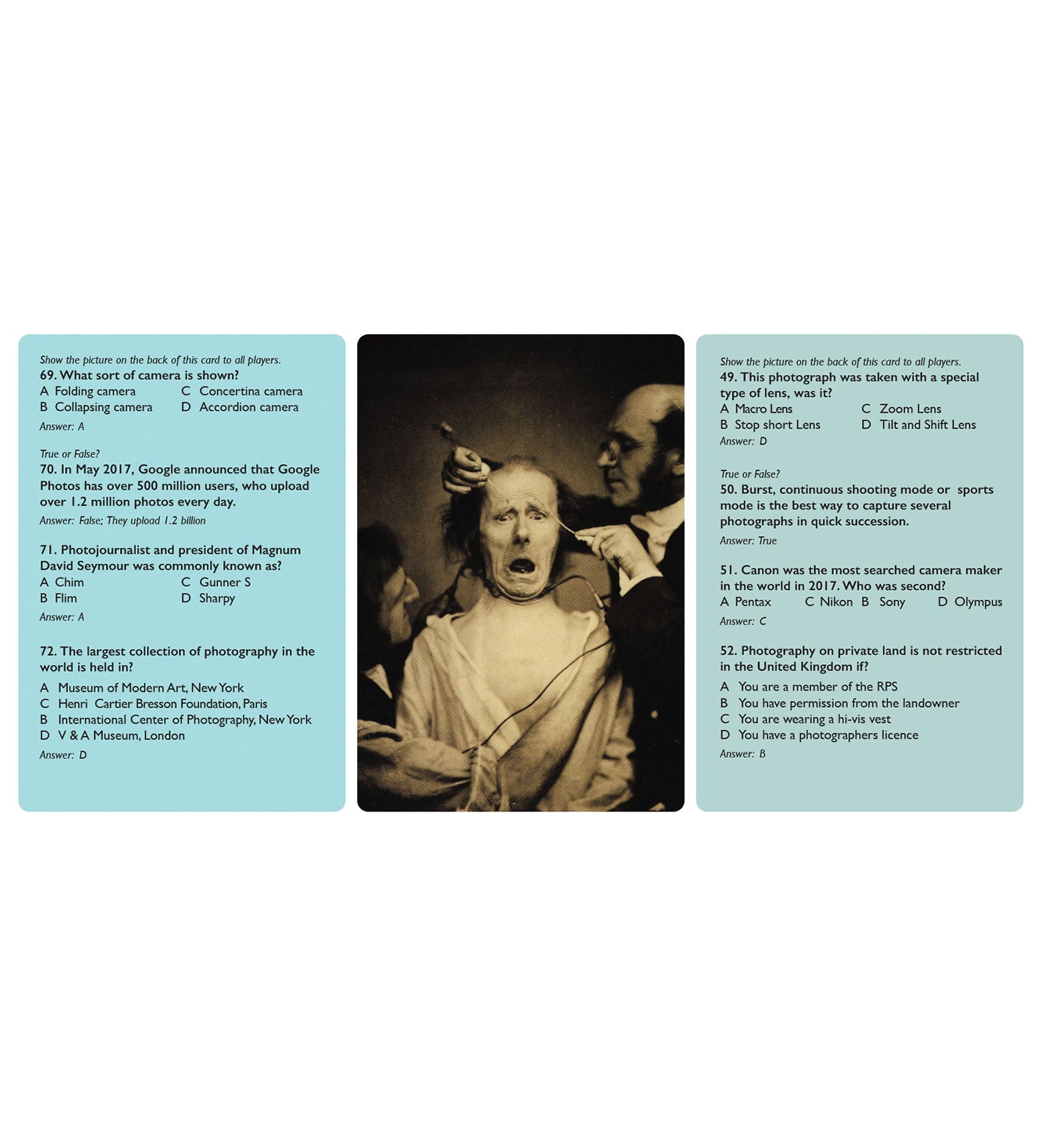 Test your knowledge of photography with this fun game created specifically for lovers of photography. This pack contains 36 picture based photography themed cards with 144 questions in total making for hours of fun for photography friends. Find out strange and fascinating facts from the history of photography.