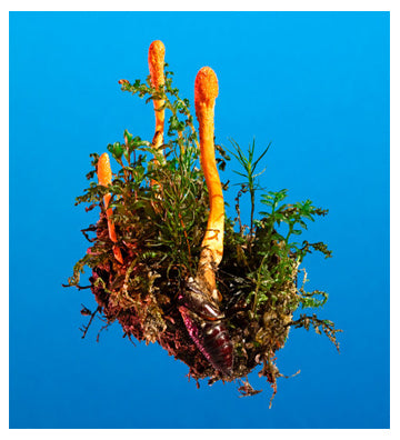 Familiar gilled mushrooms make appearances, as do mushrooms with more unusual morphologies. Striking examples include a very phallic stinkhorn and its eggs, a puffball with lychee-like texture, and cordyceps sprouting from insect exoskeletons.