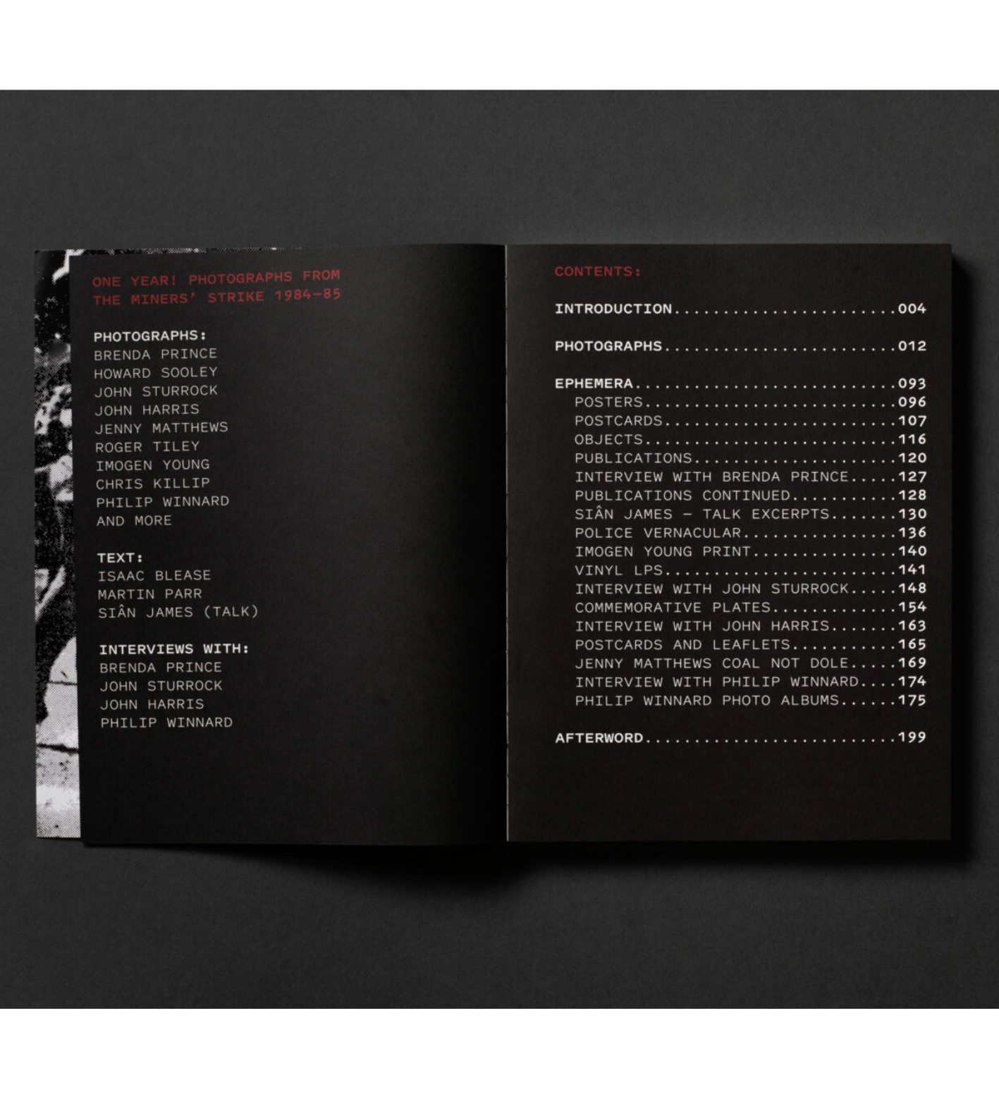 The book includes photographs by Brenda Prince, John Sturrock, John Harris, Jenny Matthews, Roger Tiley, Imogen Young and Chris Killip, as well as photo albums compiled by Philip Winnard who was himself a striking miner. Sequenced in a chronology which tells the complete history the year-long strike through these powerful, iconic photographs.