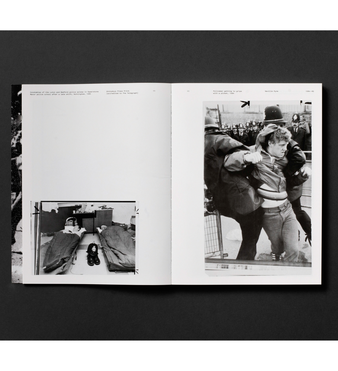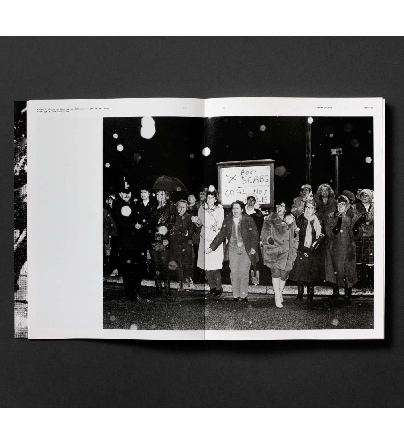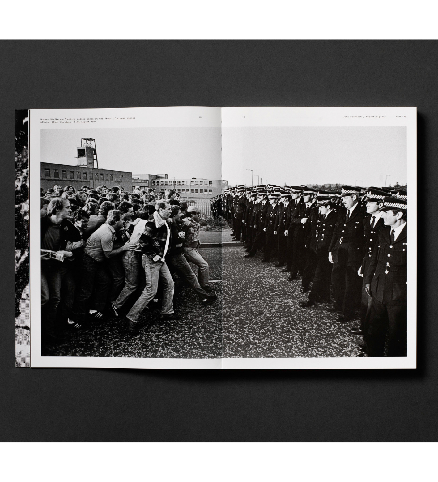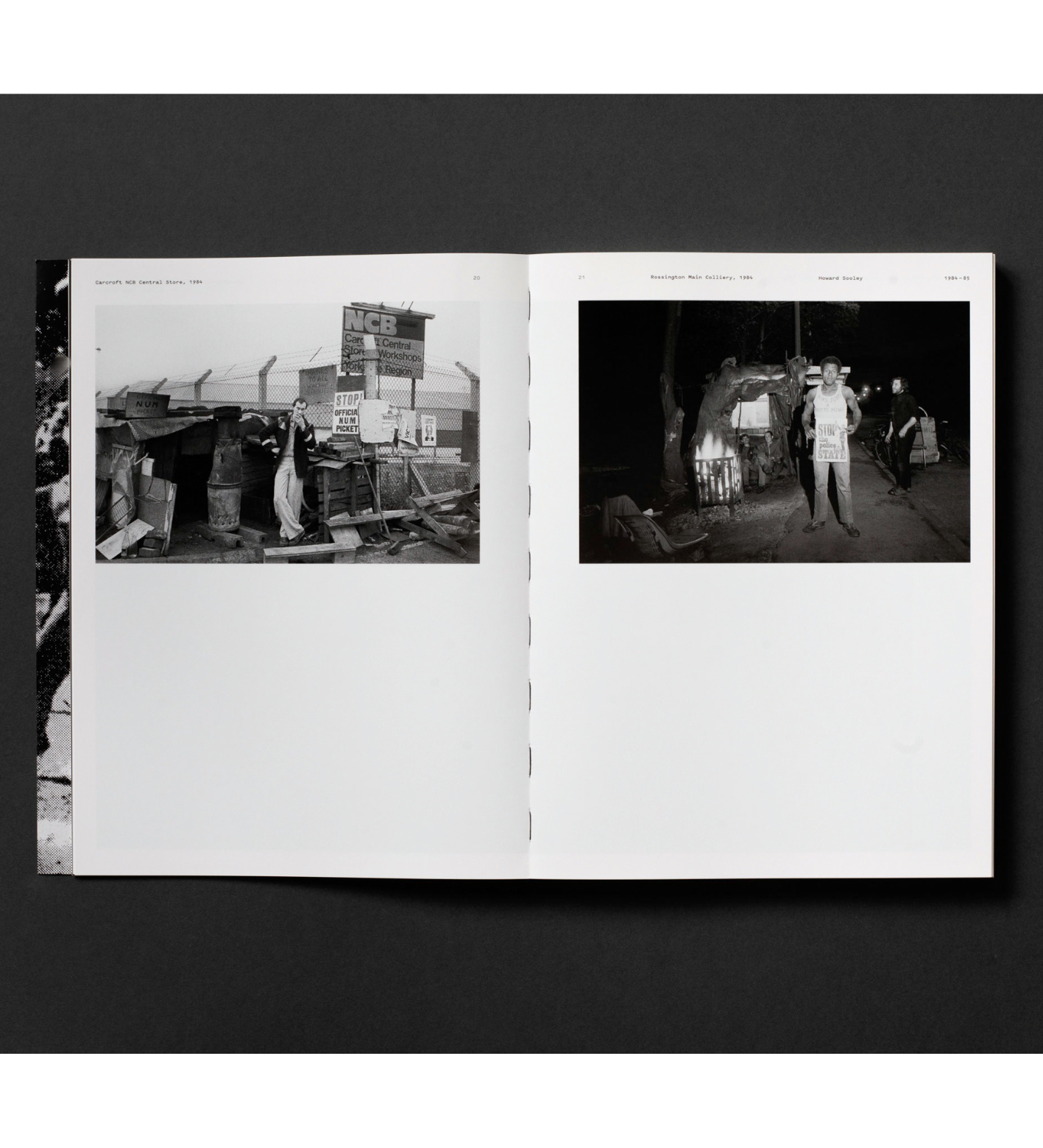 Following on, the second half of the book showcases ephemera relating to the strike. Including posters, vinyl records, plates, badges and publications – which are supported by contemporary texts, talks and interviews from the featured photographs, these texts are exclusively available in this book. Collectively, the materials demonstrate the power and the contradictions inherent in using photography as a tool of resistance.
