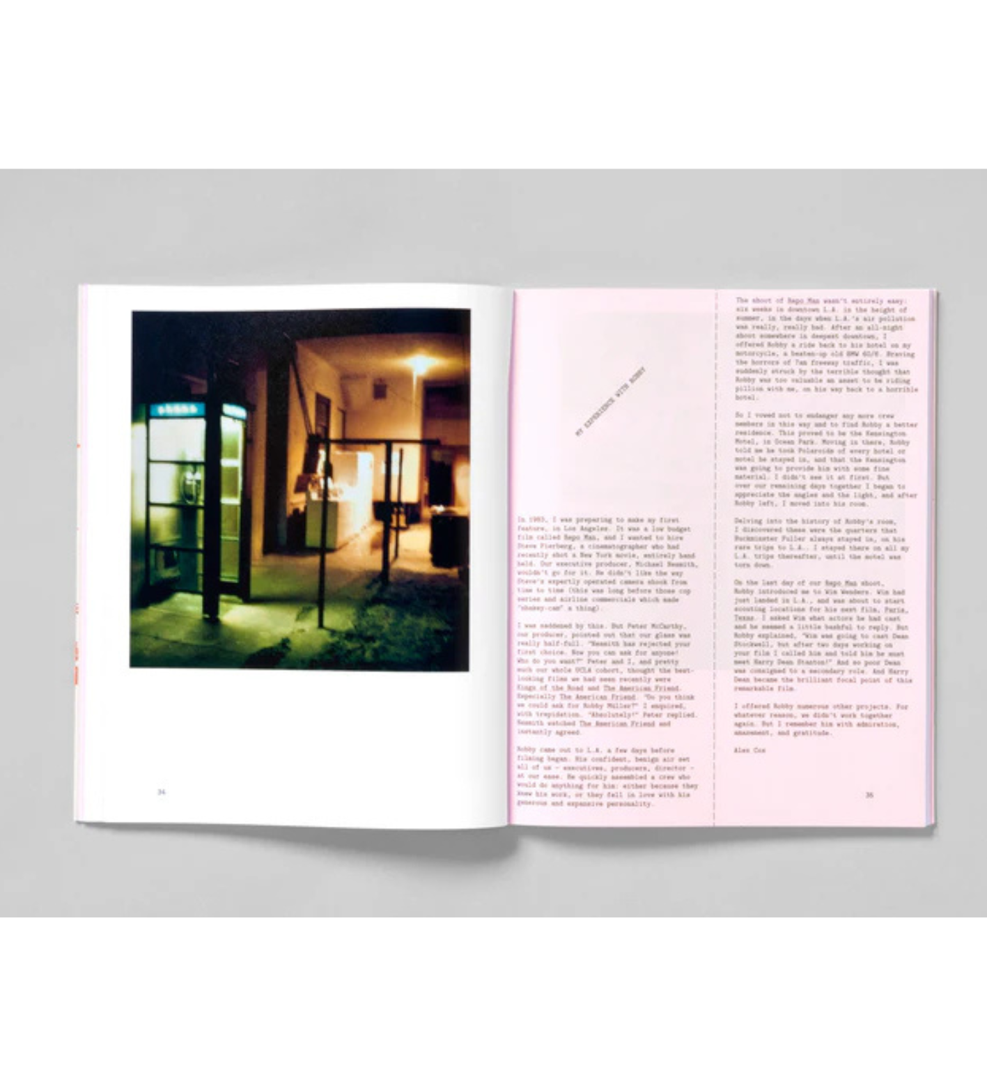 Edited and with an introduction by Andrea Müller-Schirmer; designed by Linda van Deursen and expertly printed in Italy and bound as a uniquely flexible chopped linen soft-back, silk screened in a sun-kissed orange, it carries the warmth of Müller’s Los Angeles. Alongside Müller’s images are texts from his collaborators, including directors Alex Cox and Wim Wenders, and actor Willem Dafoe.