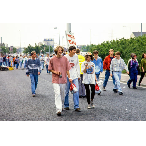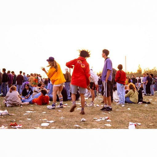 The event was the high point of the "Madchester" scene where indie rock met rave and focuses on the crowd of 30,000 and their fashions for a snapshot of very particular time and place.