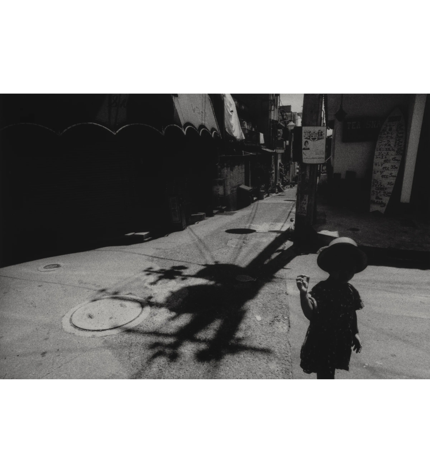 Nishimura photographs in an instinctive and spontaneous way. Her visual language is poetic, spiritual, and deeply personal. While her stylistic approach to image-making, in contrasted black and white, often blurred, or grainy, is close to some of the artists associated with Provoke, her work is imbued with an introspective and haunting quality that evokes a unique and profound emotional dimension. Throughout her long and ongoing career, Nishimura has photographed women with a distinct attentiveness. The closeup of a woman’s face, her hair brushed by the wind; a woman energetically walking down the street with her grocery basket, her head turned away from the camera; the back of two women walking down a street; a girl reading on a sofa with a magazine resting on her knees; or the intimate portraits of her childhood friend. These photographs depicting women in their everyday lives are filled with a knowing and empathetic quality that stands out in the history of Japanese photography.