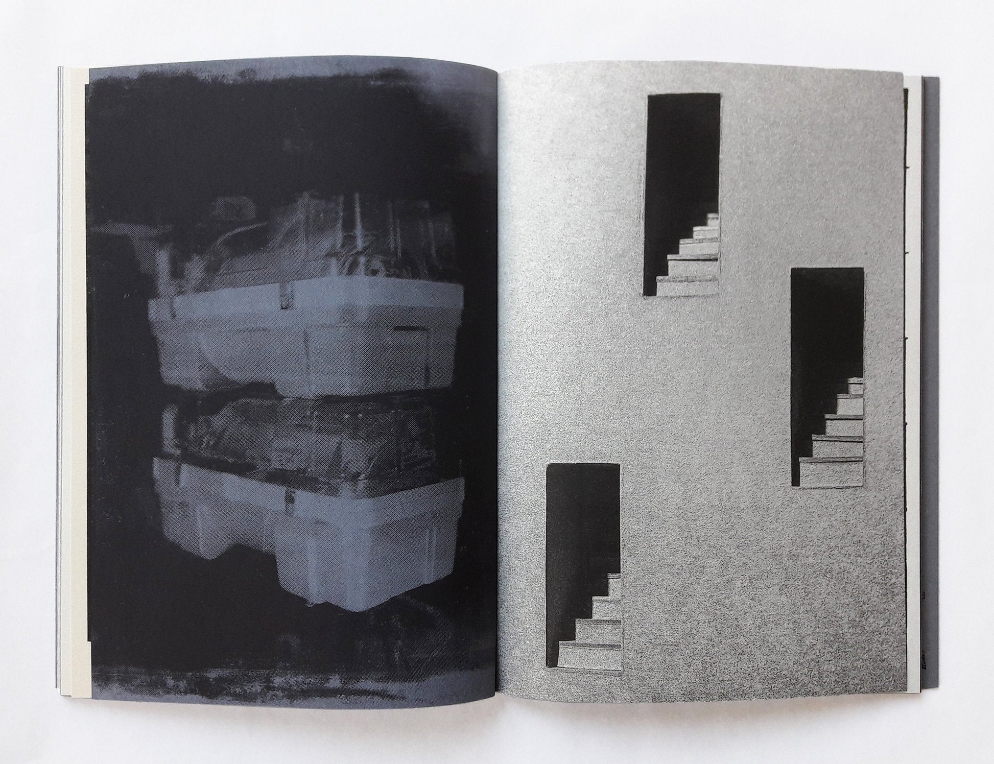 Tohu wa-Bohu is a collaborative artist's book project by Extrapool and guest curator Taco Hidde Bakker. During two residency periods at Extrapool, six visual artists explored the interface of photography and risograph/stencil printing loosely inspired by the concept of tohu wa-bohu and the city of Nijmegen.